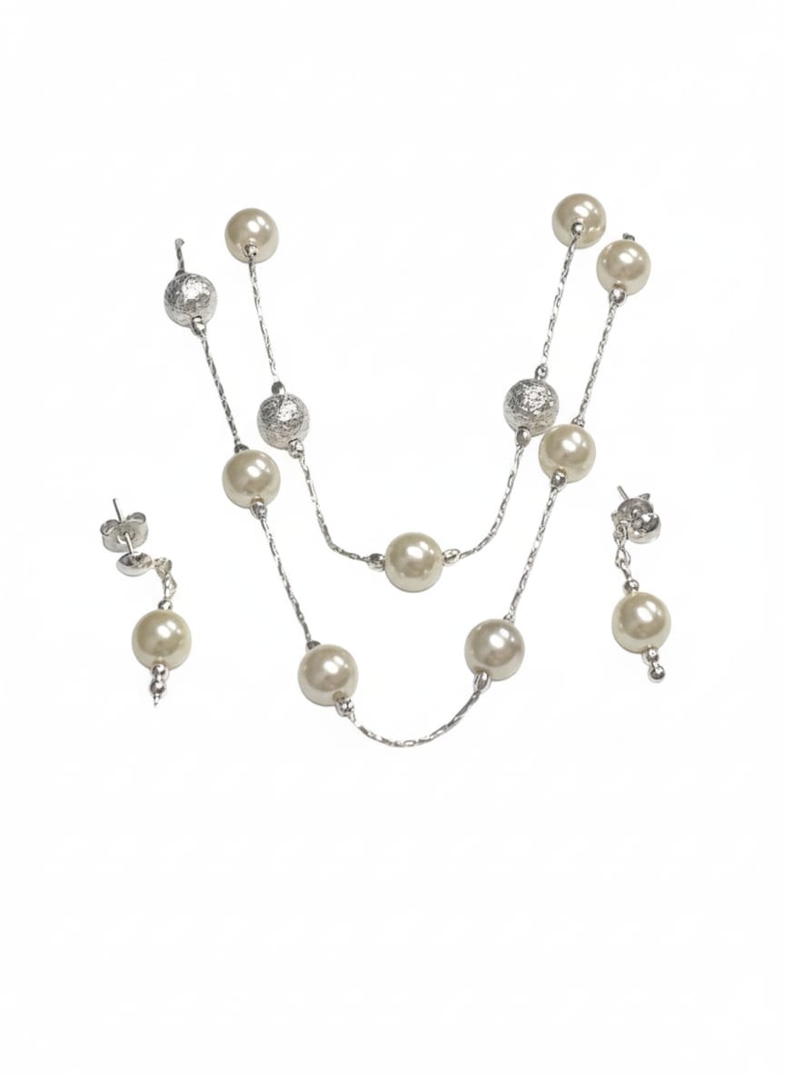 Collar con aretes de perlas de plata.